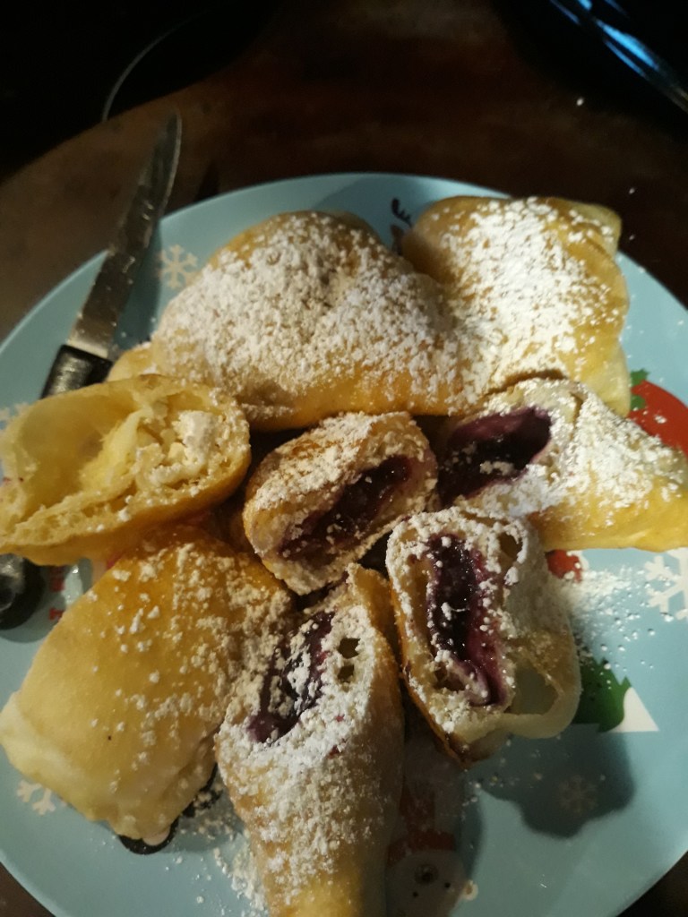 Add all ingredients and make a soft dough, coat with oil and let it rest until it has doubled. On a surface roll into a thick circle, cut into 8 pizza slices. Roll the slices in a ball,then flat and stretch each ball a little with your fingers. Next, using a rolling pin roll them out thin, cover a good area with feta and roll into a log, then roll the log itself. Put them in a pan and cover with plastic wrap to rise again for 30min. In the meantime beat 1 egg +tbsp of milk , set aside. After 30min preheat the oven to 375° and after the oven has preheated spread the egg and milk mixture over them. Bake for about 28min.